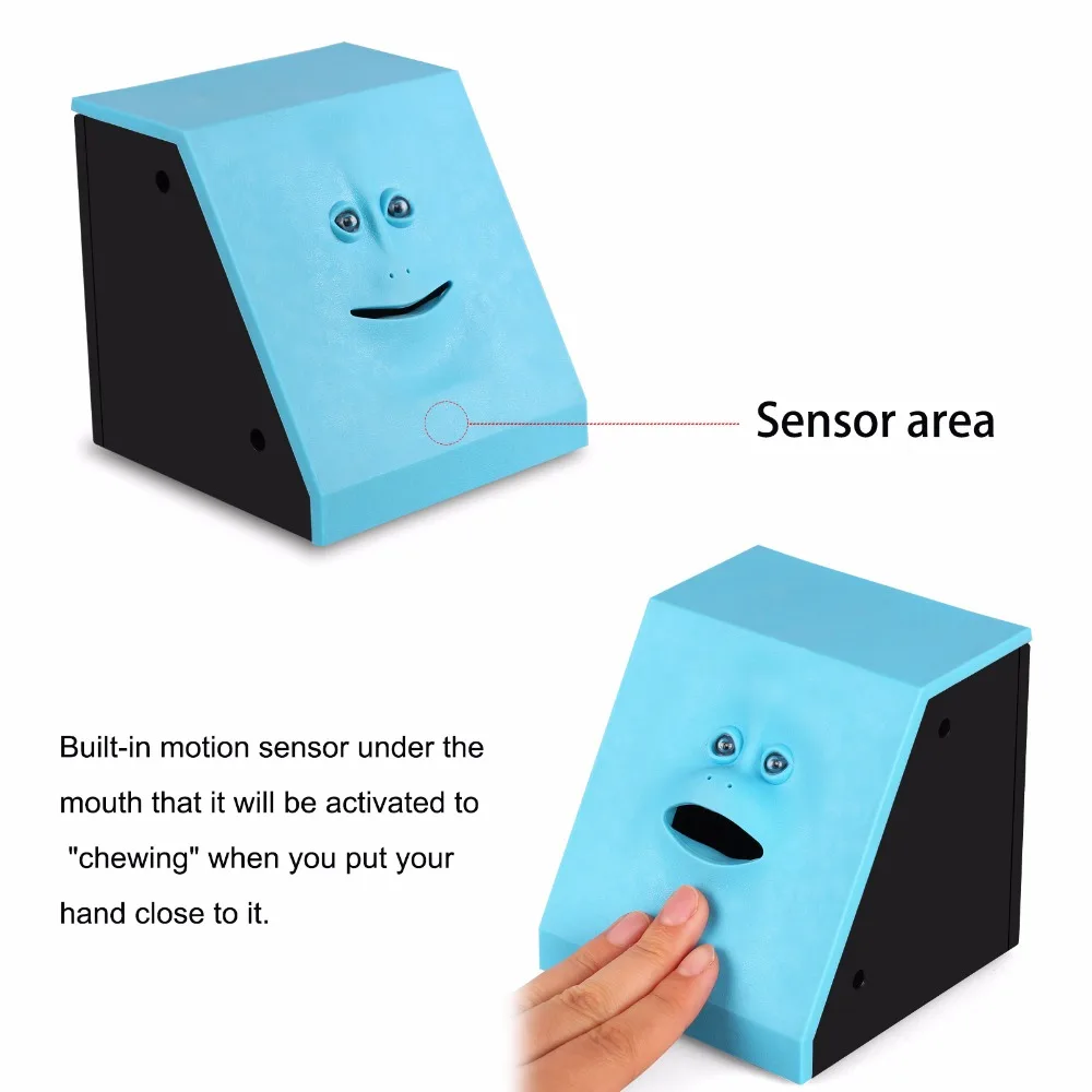 Put your coin on its mouth, and the face bank will "eat" it to its tummy.