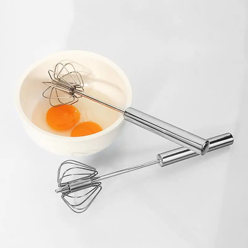 Stainless steel hand pressure rotary semi-automatic egg beater home kitchen manual pressing egg cream sauce mixer.