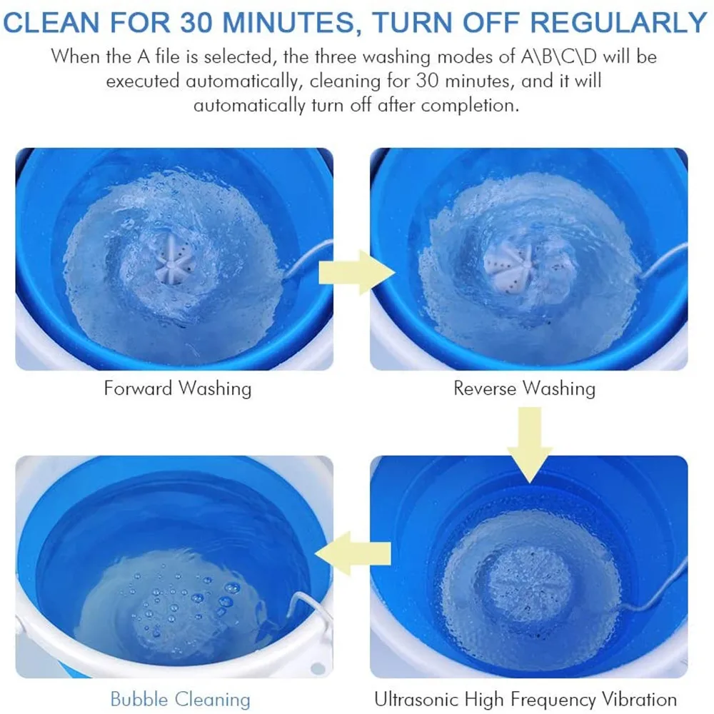 【Energy-saving & Safety】The washing machine will automatically shut down after 30 minutes of operation; it has a powerful suction cup, so there is no need to worry about shaking. Note: This equipment is not suitable for washing large and heavy clothes such as jeans!