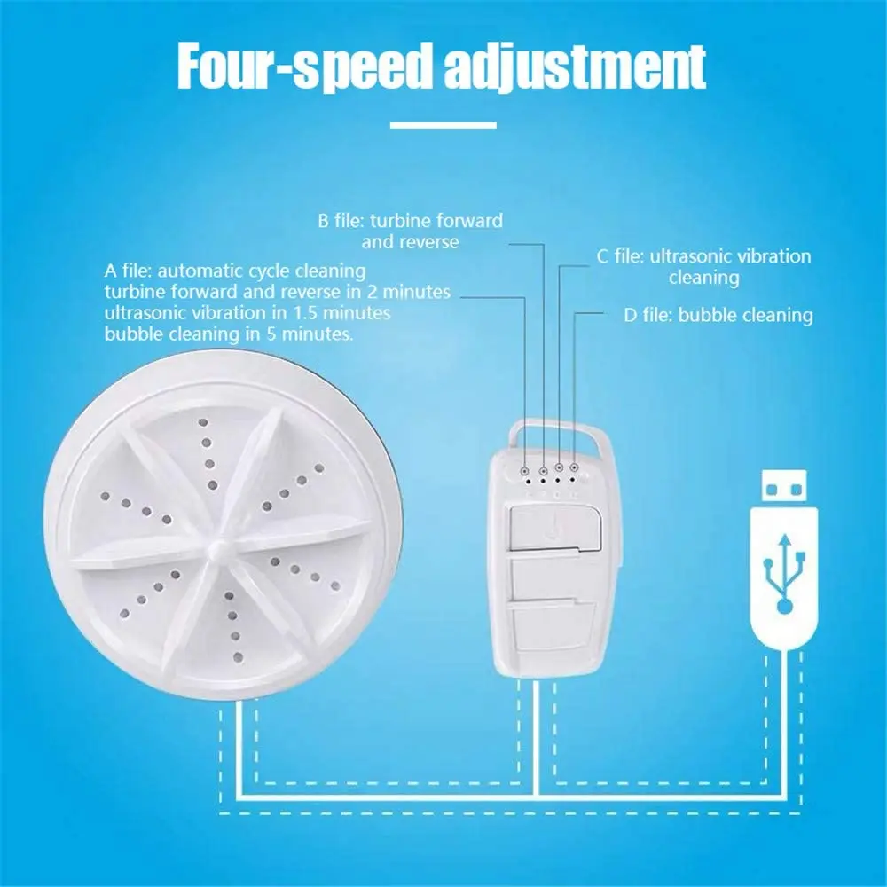 【Four gears:】 A, Automatic B, Turbine cleaning C, Ultrasound D, Bubble cleaning When you select the A file, the three processes of b, c, and d are automatically completed, and the time is 30 minutes.