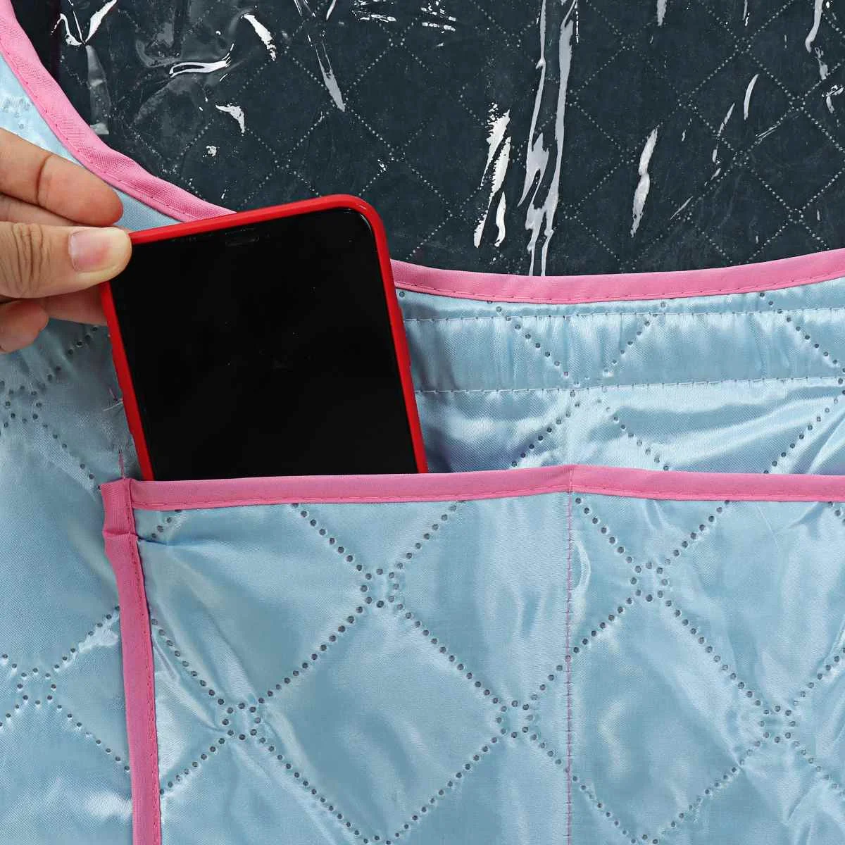 -The humanized pocket, enlarges the design, may put the large size mobile phone or the remote control, the sauna entertainment two not wrong.