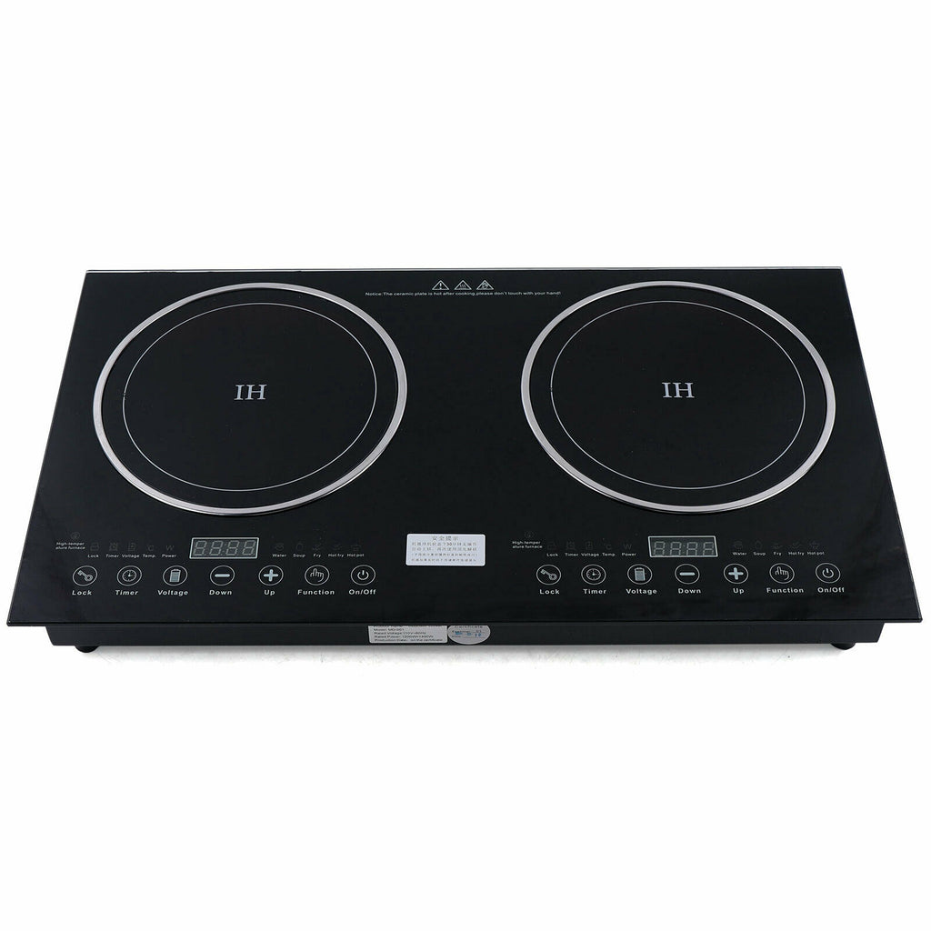 【Double-head induction cooker】This professional digital double-head induction cooktop is equipped with 2 round top heating zones, which can be independently configured with temperature zone settings and digital LCD display.Fit diameter 12cm-24cm iron pot