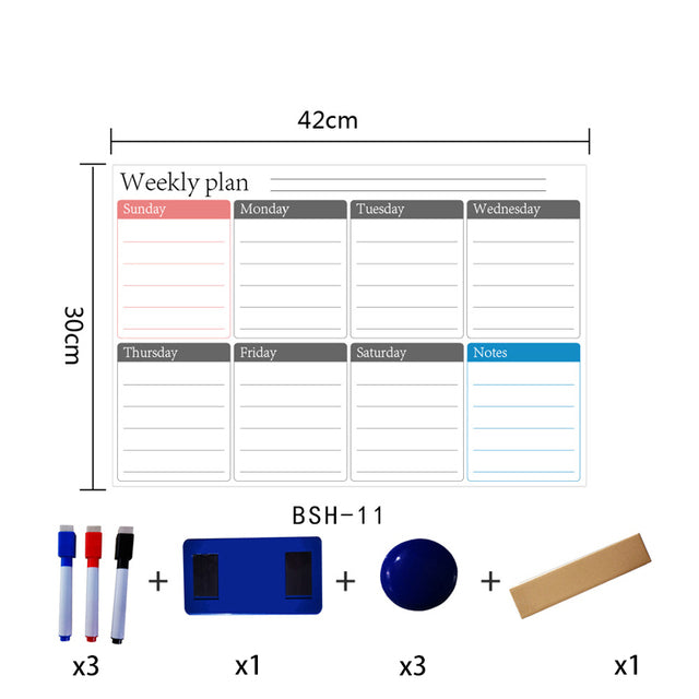 ⚠️ Please make sure your fridge can support magnetic items before placing the order! Before usage, please remove the thin protective film from the front of the white board!